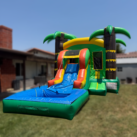 Bring the island energy to your next party with our Tropical Vibe Mini Combo Waterslide! Standing 12 feet high, this colorful inflatable is the perfect size for younger kids and smaller spaces while still delivering big fun. Guests can climb up, slide down, and enjoy a refreshing splash landing, making it a great choice for backyard birthdays, school events, and summer celebrations.